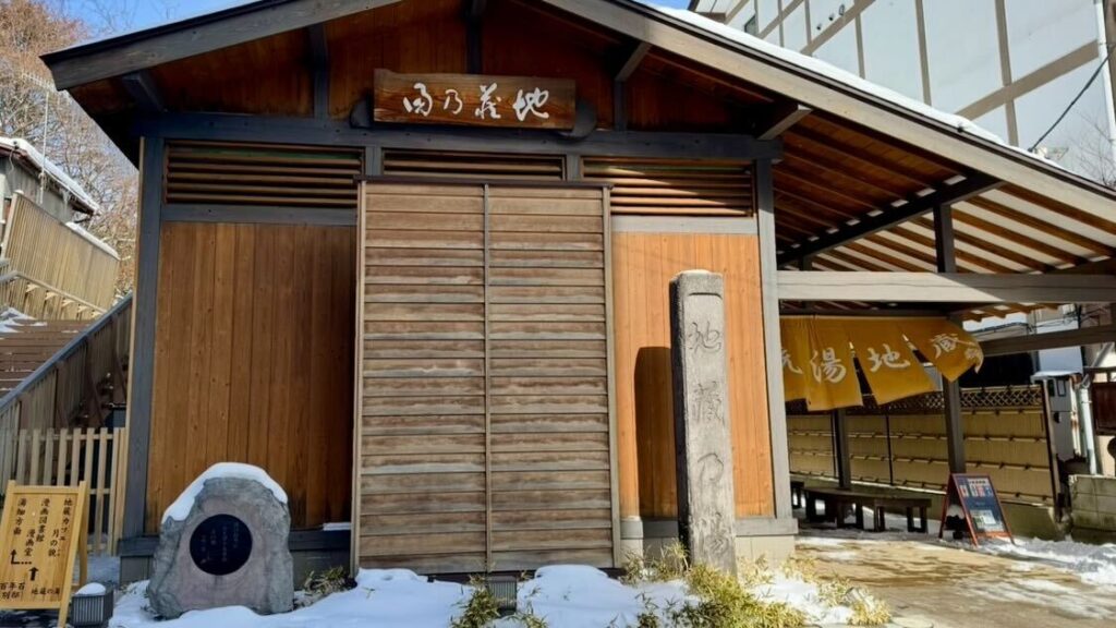 地蔵の湯へ到着!冬は地面が凍っているので、滑らないようにご注意を…。